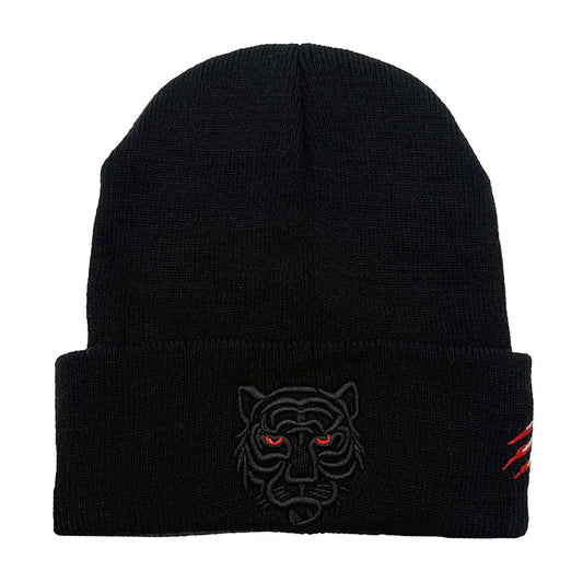 Tiger head and claw marks embroidered woolen outdoor warm hat knitted hat