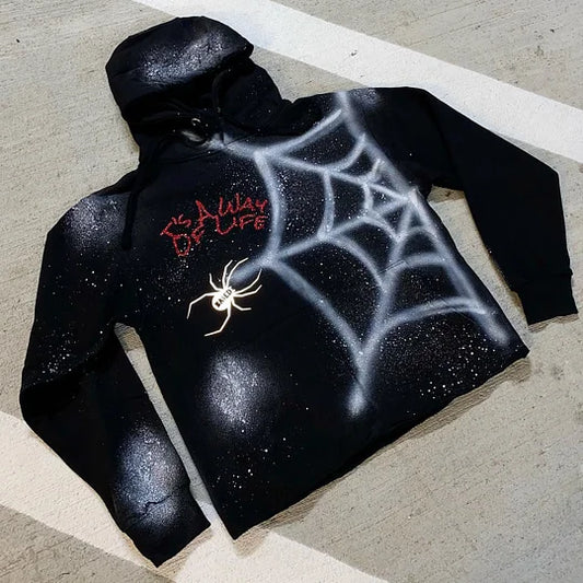 Vintage Spider Print Long Sleeve Hoodie