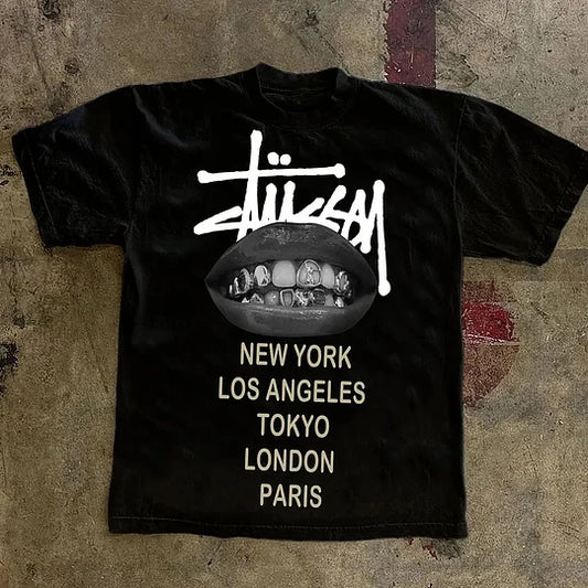 Words Lip Letters Print Short Sleeve T-shirt