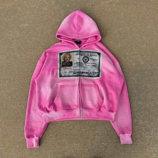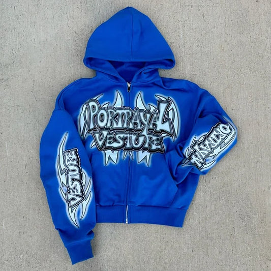 Portrayal Vesture Print Long Sleeve Zipper Hoodies