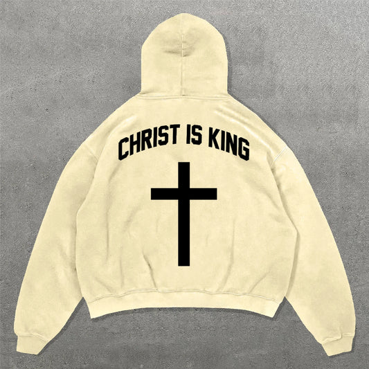 Christ Is King Print Long Sleeve Hoodies