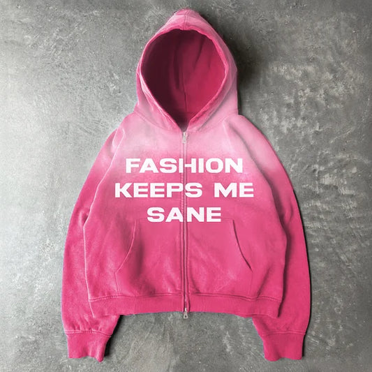 Fashion Keeps Me Sane Print Long Sleeve Zipper Hoodies
