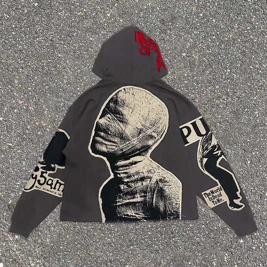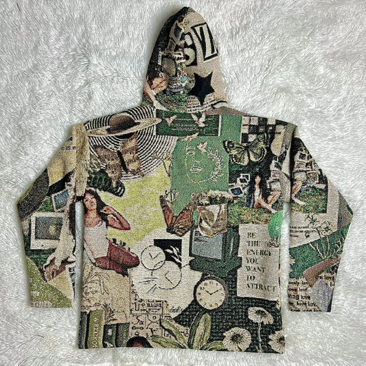 Statement hip-hop graphic tapestry hoodie
