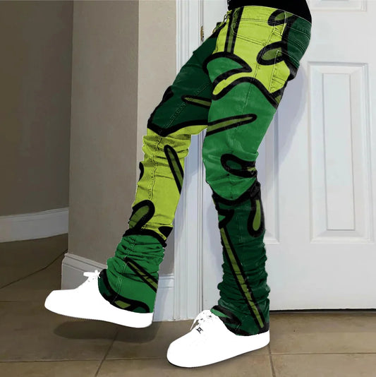 Printed Casual Vintage Street Stacked Jeans