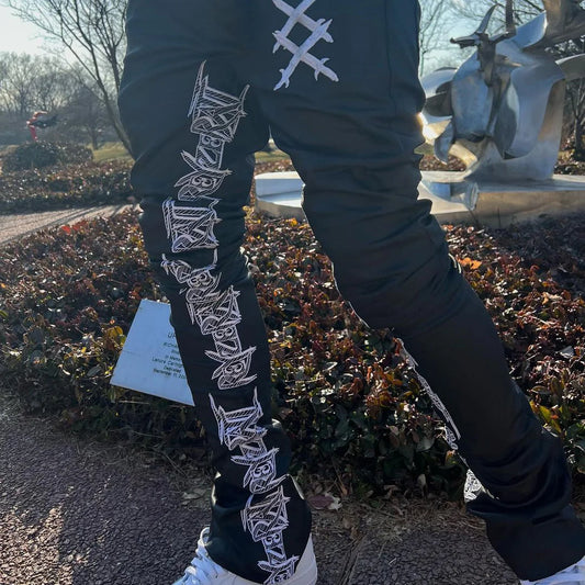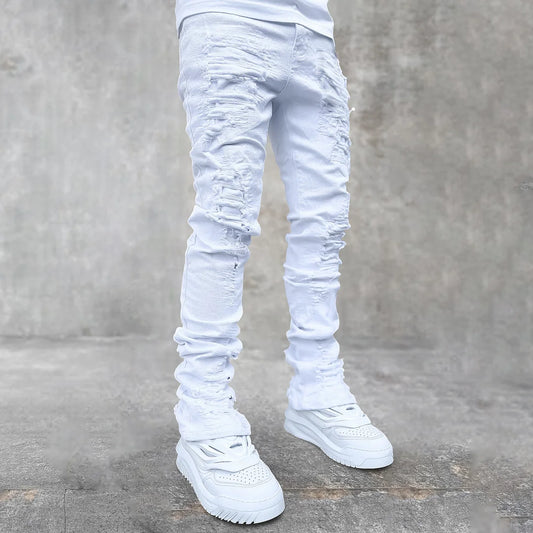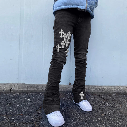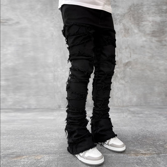 Men's Street Fashion Stretch Patch Denim Straight Leg Pants