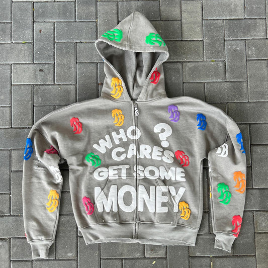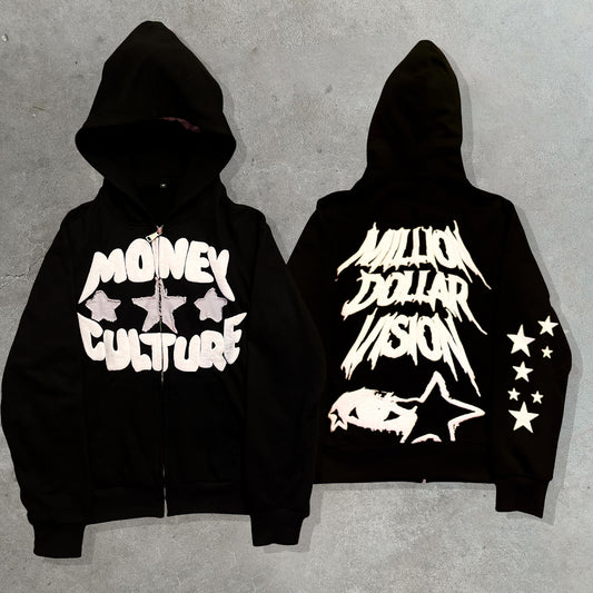 Stitched Color Print Zipper Long Sleeve Hoodies