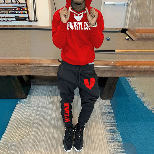 Heartless Print Hoodie Sweatpants Two Piece Set