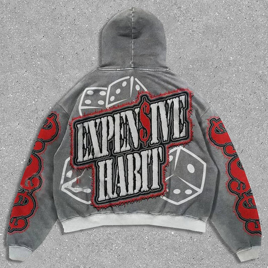 Letters Cross Print Long Sleeve Zipper Double Layer Hats Hoodies