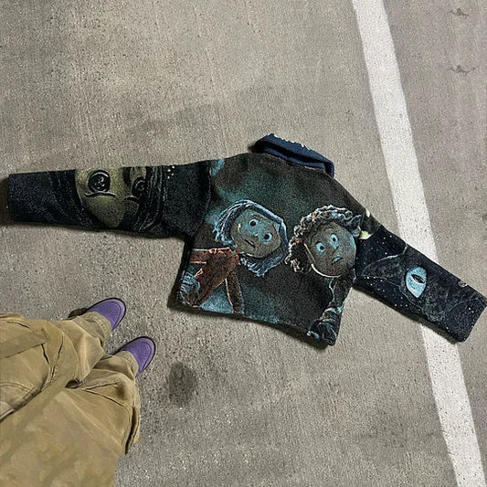 Streetwear Zip-Up Lapel Tapestry Jacket