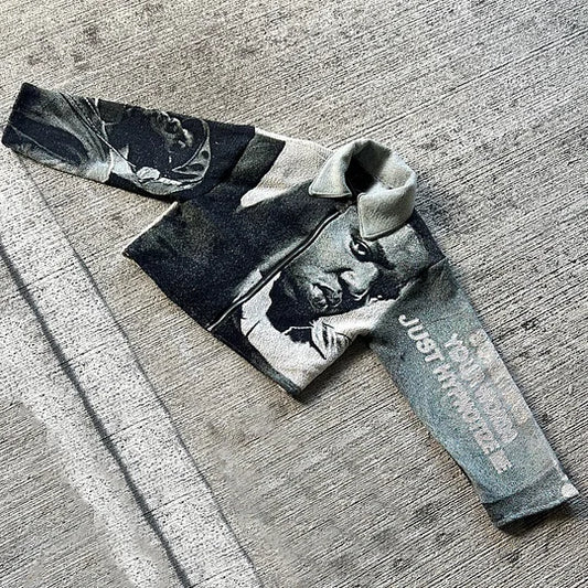 Casual Street Rap Tapestry Zip-Up Jacket