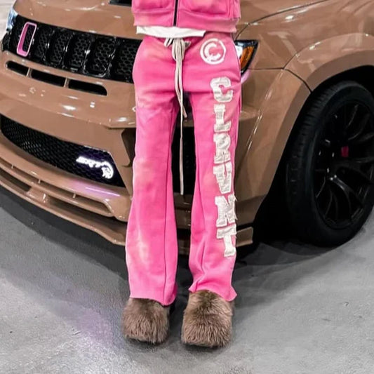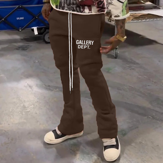 Elevated Casual Summoned Rib Print Pocket Flared Trousers