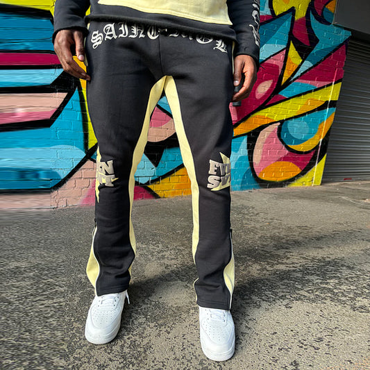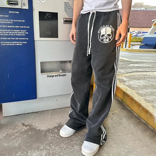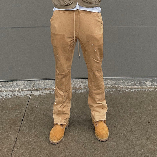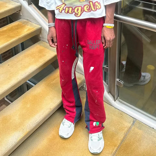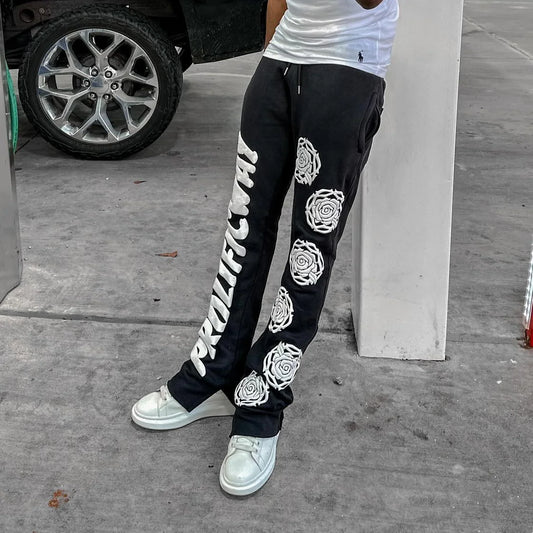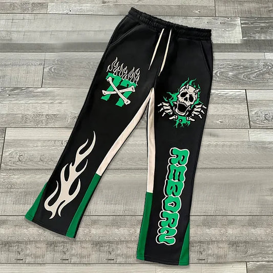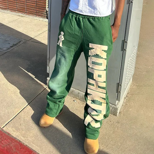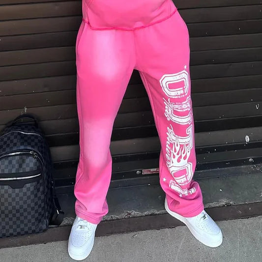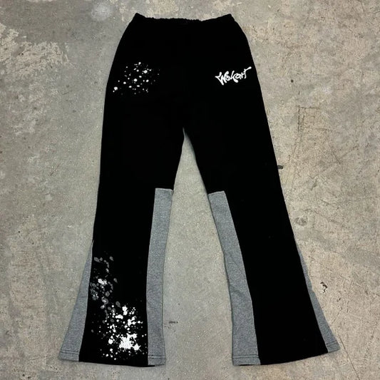 Personalized Letters Contrast Color Print Pocket Flared Trousers