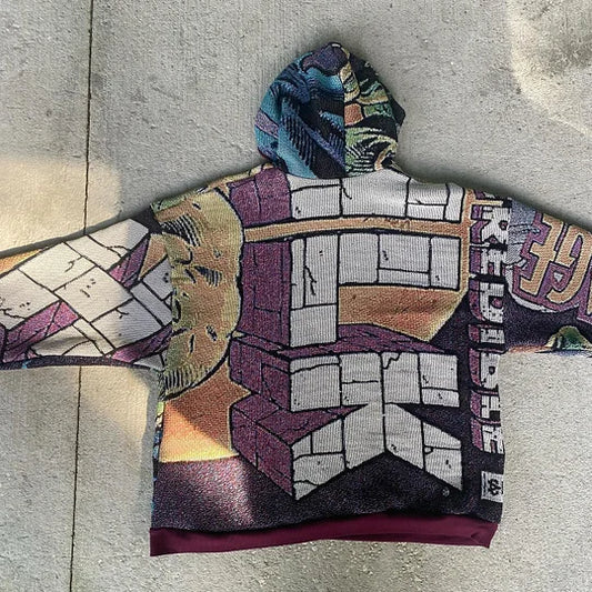 Retro Cartoon Pattern Casual Tapestry Hoodie
