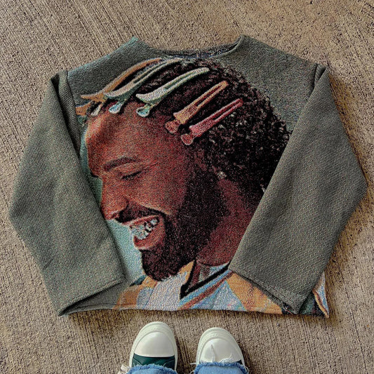 Trendy hip-hop graphic tapestry sweatshirt
