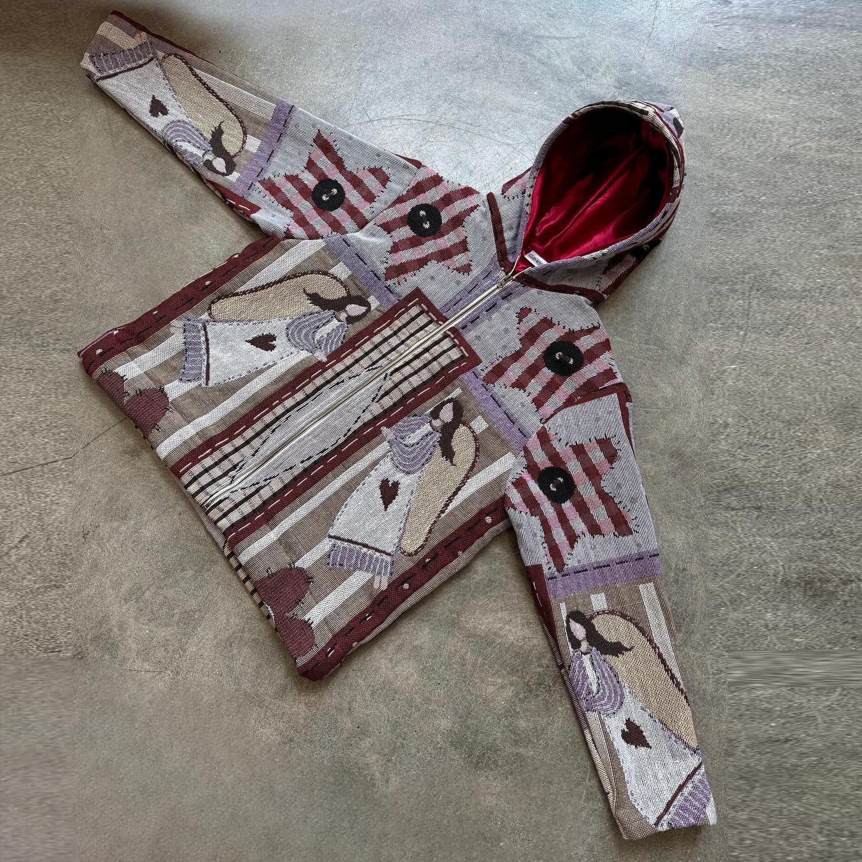 Stylish Vintage Zip-Up Tapestry Hoodie
